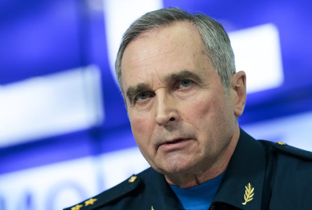 2016年12月29日,俄罗斯武装部队飞行安全部门负责人谢尔盖·贝内托夫在新闻发布会上发言。(新华/美联)