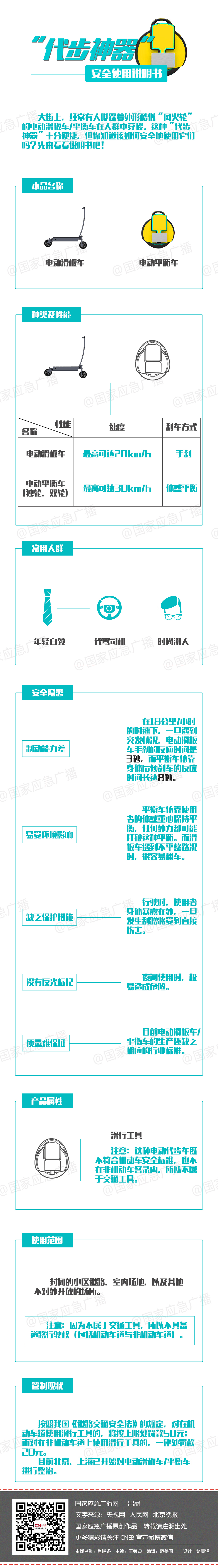 大街上,经常有人脚踩着外形酷似“风火轮”的电动滑板(平衡)车在人群中穿梭。这种酷炫的“代步神器”十分便捷,但你知道该如何安全地使用它们吗?先来看看说明书吧!