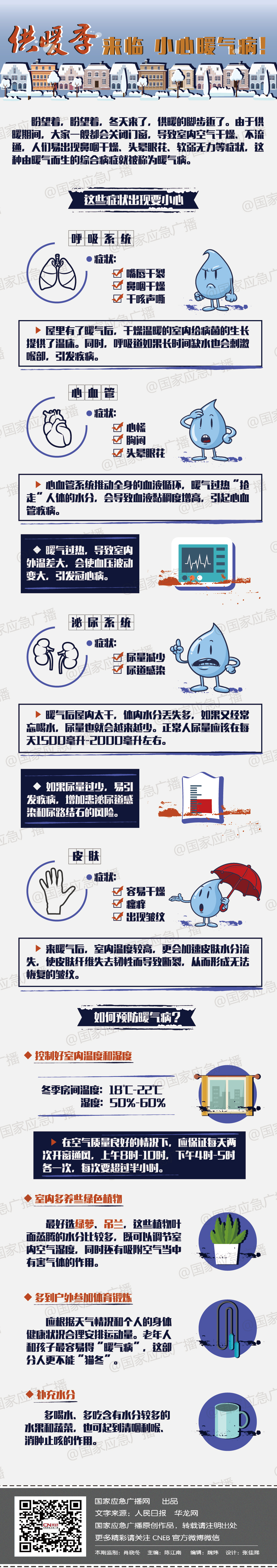 盼望着,盼望着,冬天来了,供暖的脚步近了。由于供暖期间,大家一般都会关闭门窗,导致室内空气干燥、不流通,人们易出现鼻咽干燥、头晕眼花、软弱无力等症状,这种由暖气而生的综合病症被称为暖气病。