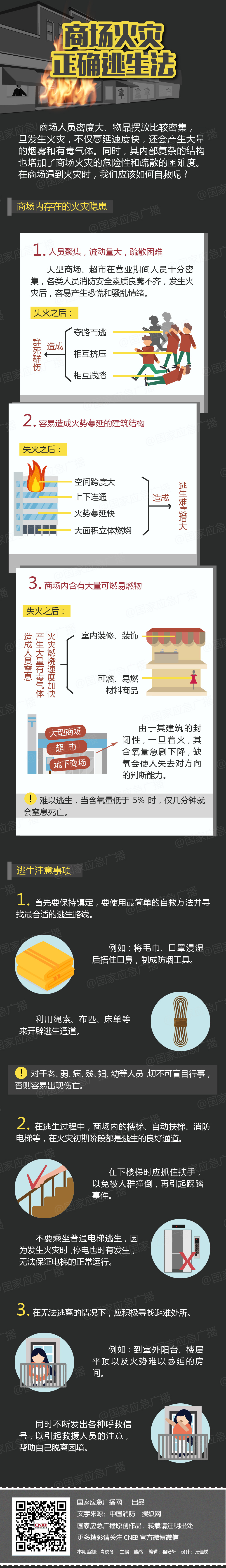 商场人员密度大、物品摆放比较密集,一旦发生火灾,不仅蔓延速度快,还会产生大量烟雾和有毒气体。同时,其内部复杂的结构也增加了商场火灾的危险性和疏散的困难度。在商场遇到火灾时,我们应该如何自救呢?