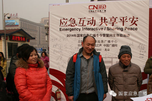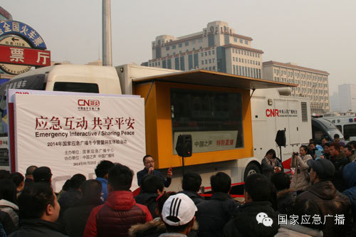 “国家应急广播2014应急冬令营暨网友体验”活动1月23日(星期四)上午在北京火车站前广场举办。活动现场设置应急知识互动、应急场景演练等多个环节,包括应急知识计时拼字游戏、应对突发火灾时火车站安全标识竞猜、消防灭火器的使用演示等互动游戏。北京站广场候车人群积极参与了当天活动,在轻松的氛围中了解应急知识、提高应急技能,学习如何应对、处置突发事件,保护好自己和他人。